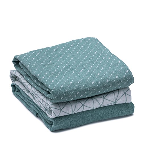 Urban Kanga Mousseline Doek 70 X 70 cm Keukendoekjes Burpdoeken Ökotex voor Baby – Pak van 3 (Groene stippen)